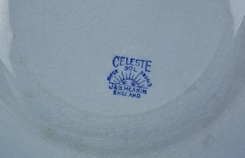 J & G MEAKIN ENGLAND, CELESTE, PORCELANA INGLESA, 05 PRATOS RASOS, 22 CM